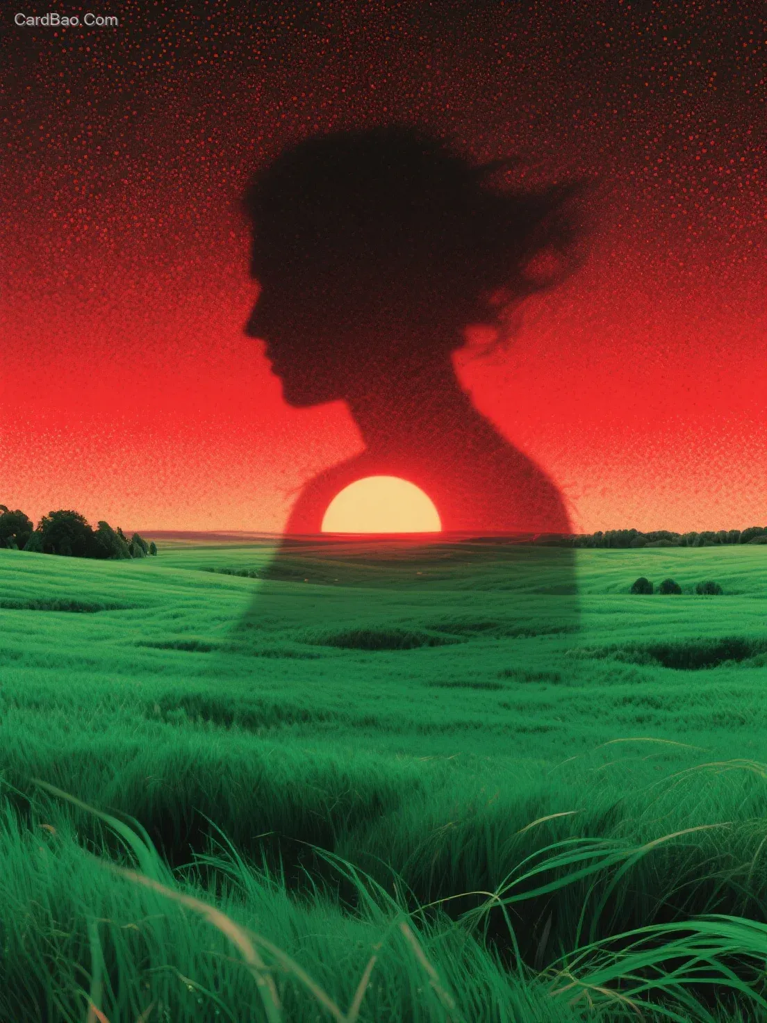 Story into Shadow, Stories Within Shadows, Blood-Red Sunset, Green Grasslands, Purely Fictional, Intermittent Sweeping Wind, Fluid State, Gradient Diffused Granular Background
