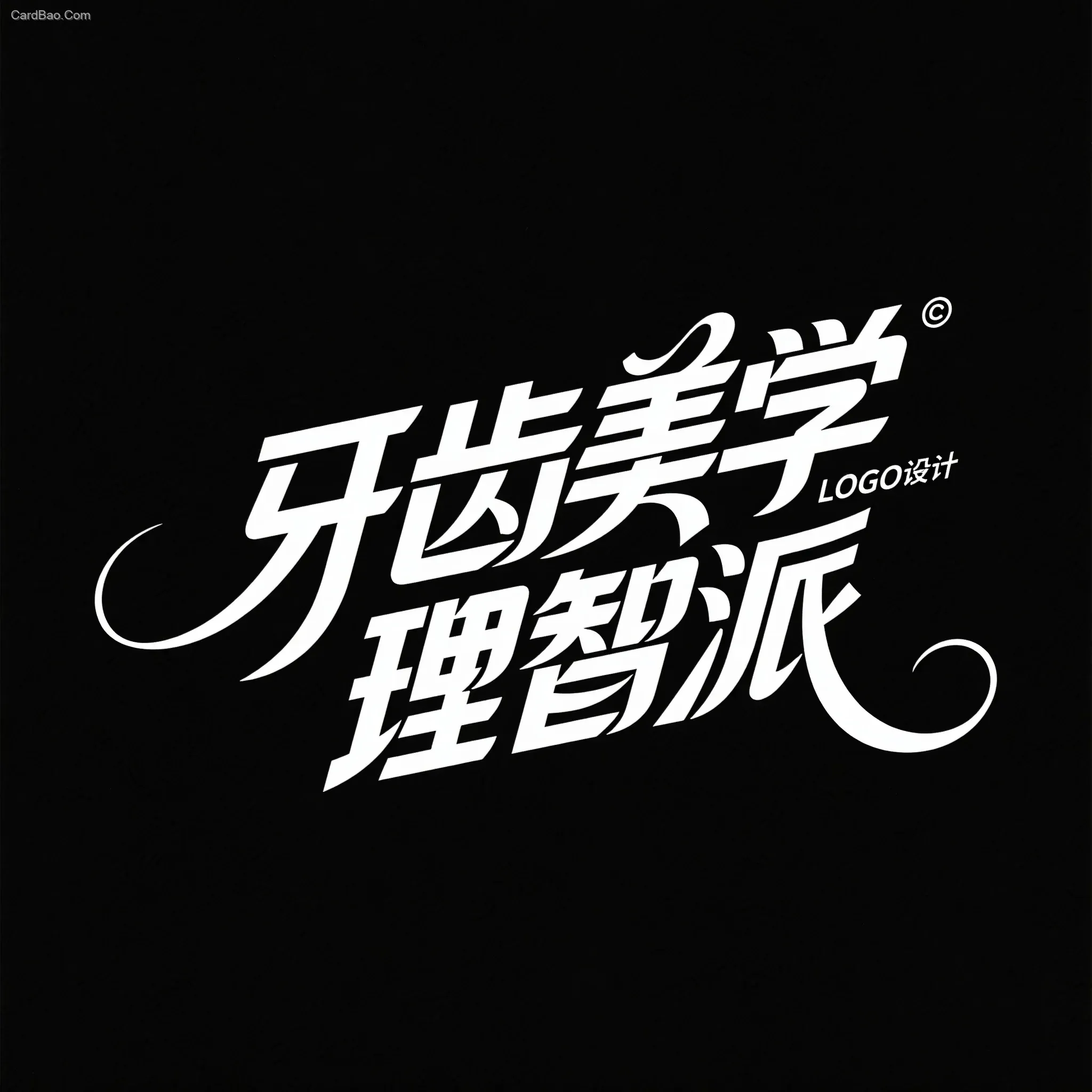 一个极简风格的中文LOGO设计,品牌名称为“牙齿美学理智派”。字体采用了一种独特的现代化书法体,字形流畅且带有明显的装饰性笔画。字体的设计有一定的倾斜度,具有动态感,整体呈现出一种带有未来感的优雅风格。文字的笔画粗细变化明显,曲线部分富有韵律感,给人一种张扬而有力量的视觉冲击。背景为纯黑色,突出了文字的白色,增强了视觉对比,使得整体风格显得更为醒目和现代。这样的设计非常适合用作与都市、神秘、或恐怖相关的品牌或主题标识。